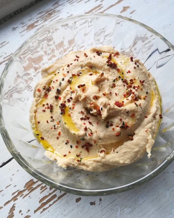 Klasyczny hummus z pomidorowo- czosnkowym akcentem