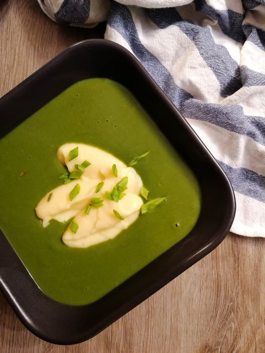 Krem z pieczonych ziemniaków podajemy z łyżką śmietany i posiekanym drobno cienkim szczypiorkiem. Mam nadzieję, że tak jak ja zakochacie się w tym mocnym, dymnym aromacie pieczonych ziemniaków z ziołami!