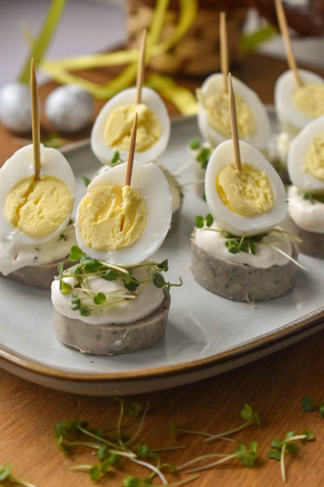 Wielkanocne koreczki z białej kiełbasy